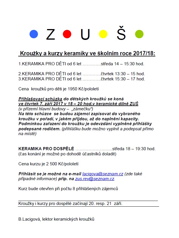 Keramika Řevnice v doplňkové činnosti – možnost přihlášení!